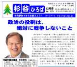 TOP>杉谷ひろば> ◆政治の役割は、絶対に戦争しないこと 高市首相の「台湾有事」に関する逸脱答弁以降、「中国になめられてたまるか」式の言説が広がっていることを大変危惧します。共同通信が「台湾有事での集団的自衛権行使に賛成48%」との世論調査結果を報道しました。台湾有事で集団的自衛権を行使するとは、日本が中国と戦争するということです。軽々しく論じるものではありません。 勇ましい感情を煽る言葉がネット上を飛び交い、マスコミが過熱報道すれば、国民を戦争へ駆り立てた戦前の悪しき歴史の繰り返しになります。「政治の役割は2つある。国民を飢えさせないこと、そして絶対に戦争しないこと。」故・菅原文太さんのこの言葉を、高市首相はじめ政治・報道に関わるすべての人間は、肝に銘じるべきです。 (11月29日 杉谷伸夫) ◆国民1人10万円の借金で軍備拡大・産業投資 高市内閣は18.3兆円と、コロナ禍の時期を除き過去最大の補正予算案を閣議決定しましたが、財源の大半は国債です。こどもも含め国民一人当たり約10万円の借金になります。 その使い道は、家計支援には子ども1人2万円の給付や、電気・ガス料金補助(1世帯平均7千円程度)などほんの一部にすぎません。「物価高騰から暮らしを守る」は表向きだけ。軍事費1.7兆円増額や産業界への投資に大半が使われます。莫大な借金でバラマキすることで、更なる円安・物価高騰を招くことも心配です。 ◆ 12月の催し等のご案内 ■12月13日(土) 10:00~12:00寺戸公民館 中会議室 「市民参加でまちをつくる会」 ■12/10(水) ニデック用地・格安課税は違法!訴訟 大阪高裁で口頭弁論・結審! (15:30 大阪高裁73号法廷/別館7階):傍聴自由 原告2人(水島・杉谷)が陳述します。 ⇒ 来年3月までに判決の見込み! ※一審では、原告が全面勝訴しています。 ◆向日市議会・12月定例会が開会 11月21日、向日市議会の今年最後の定例会が開会しました。最終本会議は12月18日。 ●12/4,5:一般質問 ●12/10-12:常任委員会 ●議会に提出された市民の請願:私立幼稚園幼児教育振興助成に関する請願 ●子ども誰でも通園制度:来年4月から開始、しかし課題山積 来年4月から、全国すべての自治体で「子ども誰でも通園制度」が始まります。「全てのこどもの育ちを応援し、こどもの良質な成育環境を整備する」ことを目的に、0歳6ケ月~3歳未満で、保育所・幼稚園を利用していないすべての乳幼児が対象で、月一定時間(現在10時間)まで保育所等を利用できるように、自治体に整備が求められます。 めざす理念はすばらしいですが、現実には多くの問題点があります。?保育士不足の中で、新たな受け入れ体制が困難で、保育の質・安全確保の課題、②月10時間では少なすぎて、在宅子育て支援としての実効性に疑問、③現在の一時預り保育との関係はどうなるか、④財源負担は国が3/4ですが、実際には市町村の負担が多くなるとの心配。 特に向日市では、?の問題が深刻なので、新たに国の制度に合わせた対応は、簡単にはできないようです。できるところから始めるしかないと思いますが、課題山積です。 今議会で、この事業の設備・運営に関する基準を定める条例が審議されます。 ◆まちづくり特別委員会:アリーナ問題巡り、京都府と質疑 11月10日、向日市議会・まちづくり特別委員会は、向日町競輪場へ視察を行い、解体工事の現状を視察するとともに、京都アリーナ事業を所管する京都府文化政策監付とアリーナ問題を巡って質疑、意見交換を行いました。 事前に議会から提出していた15項目にわたる質問に対し、府が口頭で回答しました。しかし市民が求める中身の回答は無く、市民へ説明を尽くして納得してもらおうという姿勢が感られませんでした。 【質疑・回答の一部要旨】 Q 俯瞰図等建物の大きさが理解できる資料提供は? A すでに出している。詳細は検討中 Q 福祉会館前交差点の改良の検討状況は? A 市長の要望は承ってる。検討してるが答えは未。 Q 向日町会館の設置はどうなってる? A 周辺に貸館増えたので、この利用を(約束違反) Q 鉄道駅からの歩行者ルートの整備は? A ハード・ソフト一体の対策で対応する ◆杉谷伸夫の議会一般質問 杉谷伸夫の一般質問は、12月4日夕方又は5日朝一番です。Youtubeで生放映及び録画を視聴できます。 ●アリーナ問題:交差点改良は可能なのか? 今年9月の議会で市長は、「福祉会館前交差点と消防署前交差点、絶対にあそこを人が渡るようなことがないよう」必ず実現してもらうと断言しました。しかし開業まで3年を切った今も、何らの構想も説明もありません。 そもそも競輪場前の物集女街道を人が渡れないようにすれば、人身事故は起こらないでしょうが、市民の日常の移動に重大な支障が出ます。それでは改良ではなく改悪になります。 競輪場周辺の交差点が今のままでアリーナが開業すれば、来場者が歩道に溢れて車道にもはみ出すなど、極めて危険です。アリーナ整備を進めようとするなら、この危険解消策をすぐ示すべきです。 